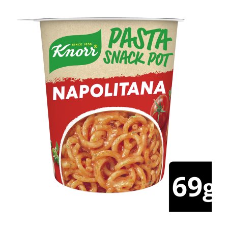 Το snack pot napolitana της Knorr είναι ένα γρήγορο και χορταστικό snack. Έτοιμο εύκολα και γρήγορα, χρειάζεστε μόνο ζεστό νερό και ένα πιρούνι για να απολαύσετε τη μακαρονάδα μέσα σε μόνο 5'.